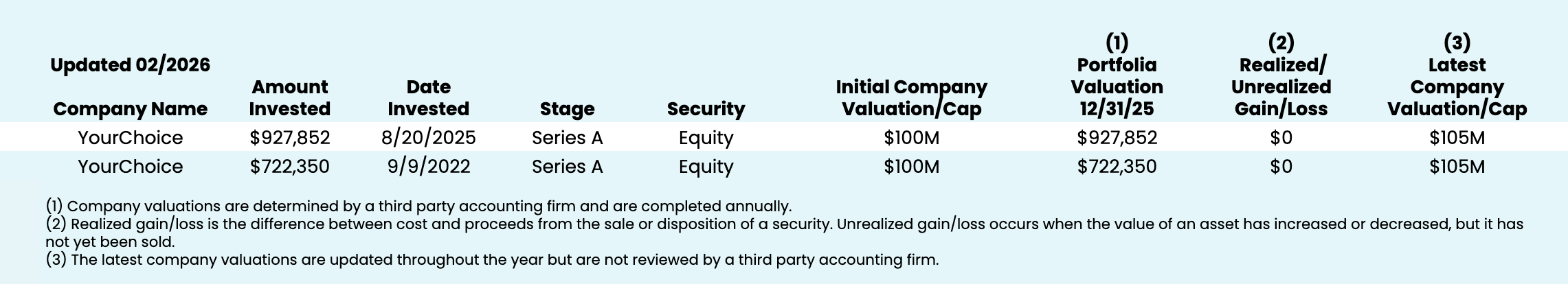 Portfolia 2022 SPV 3 LLC (YourChoice SPV) | EIN: 88-2739443